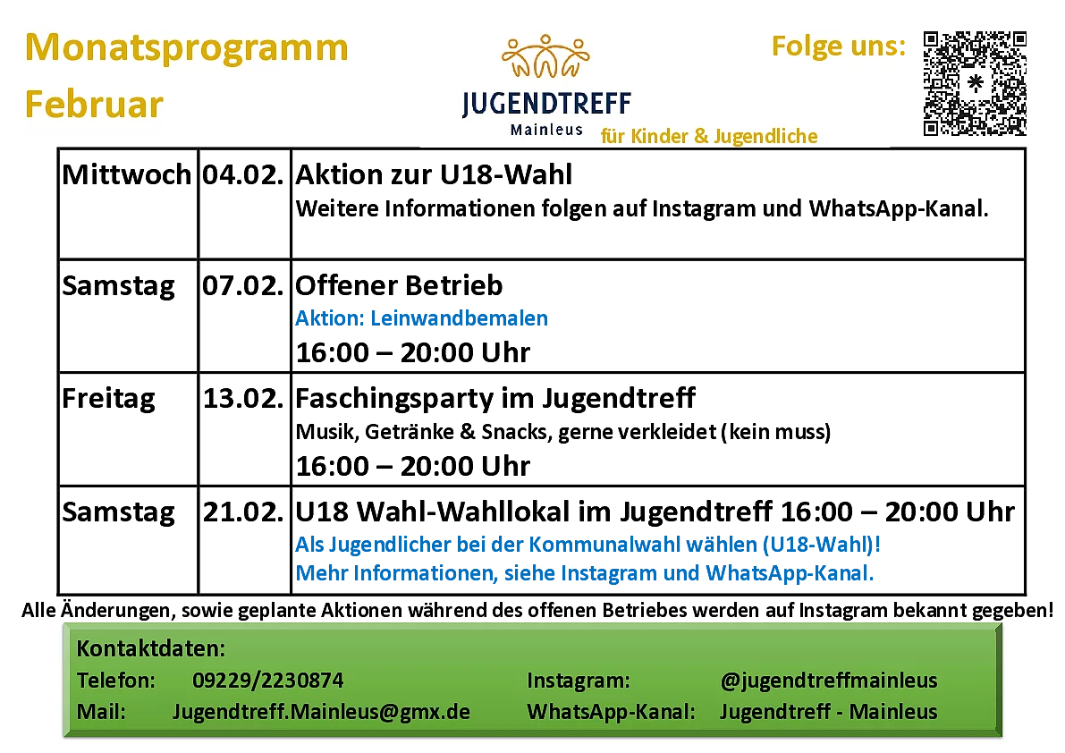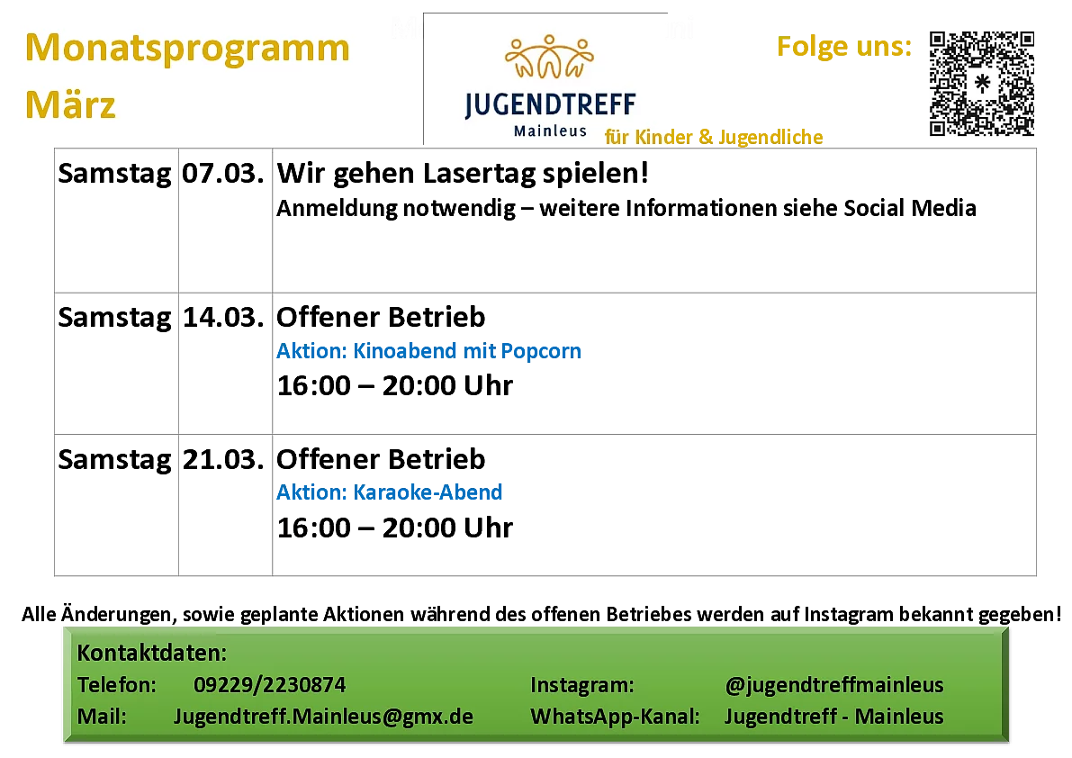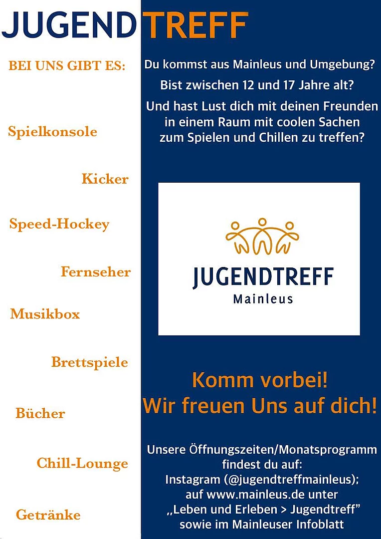 Als Angebot für Jugendliche bietet die Gemeinde auch den Jugendtreff Mainleus. Hier finden Sie alle wichtigen Informationen.